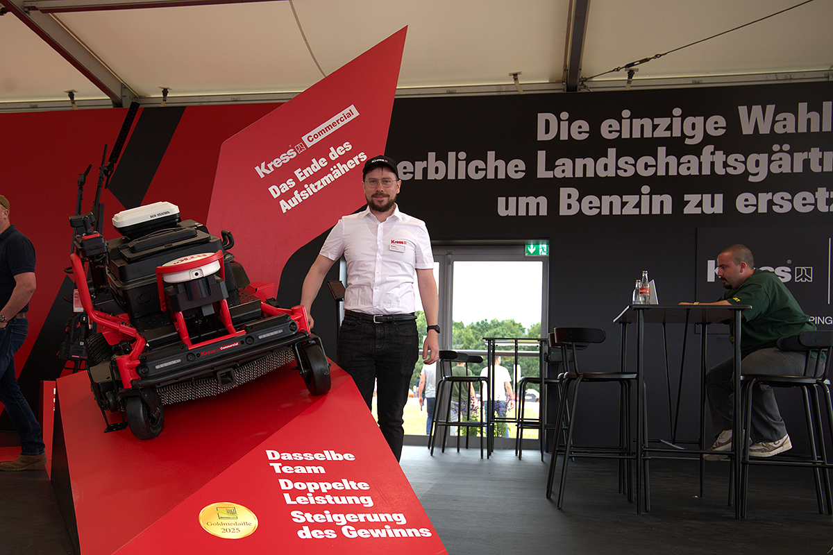 Abseits der Debatte um Nachhaltigkeit geht es in den Vorträgen auch um HVO 100, sensorbasierte Bewässerung oder Strategien gegen den Fachkräftemangel. Doch für viele kommunale Entscheider und Betriebsleiter sind es vor allem die Maschinen, die faszinieren. Hier hat die Messe einiges zu bieten. Neben dem normalen Ausstellungsprogramm werden neueste Innovationen wie immer mit den demopark-Medaillen ausgezeichnet. Eine der prämierten Maschinen ist der Großflächenmähroboter Cut & Go von Kress. Laut eigenen Angaben hat der deutsche Hersteller damit ein komplett autonomes Konzept vorgelegt. Produktmanager Florian Krenzel erläutert die Details: