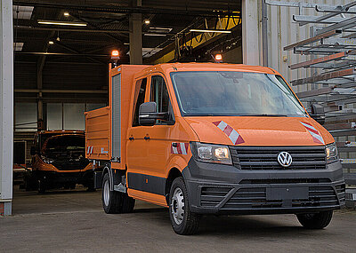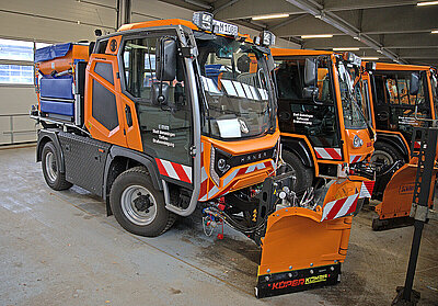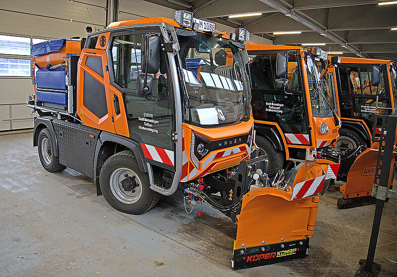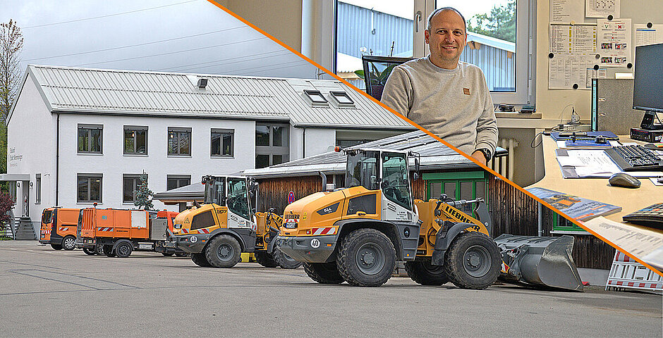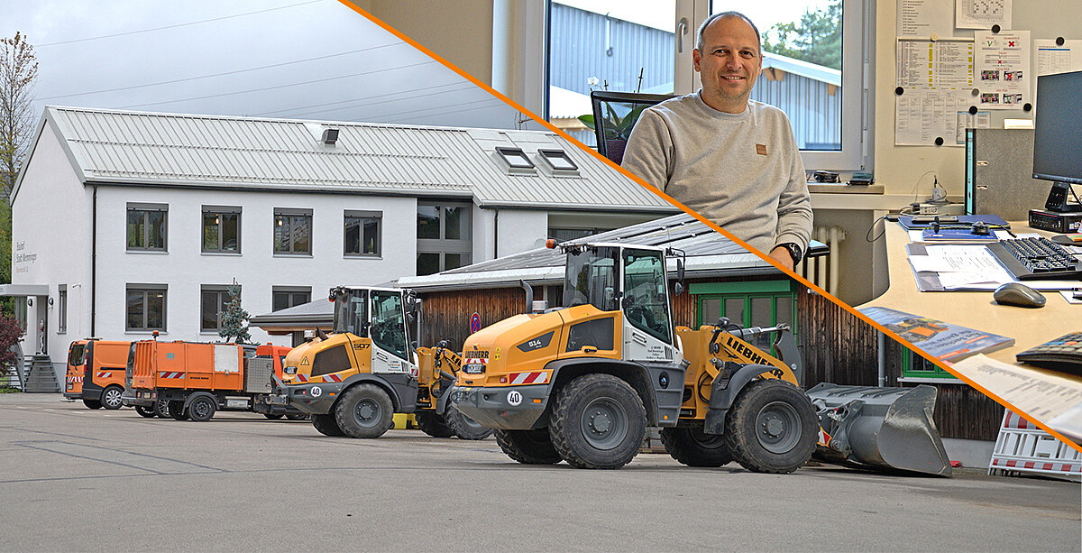 Links der Eingangs-Schranken befindet sich ein zweistöckiges Verwaltungsgebäude, in dem ein Empfang und mehrere Büros untergebracht sind. Am Bauhof übernimmt Tiefbau-Experte Michael Schuster stellvertretend die Leitung, wenn sein Kollege Markus Geikl nicht zur Verfügung steht. Auf seinen Fuhrpark angesprochen, weist Schuster auf eine Herausforderung hin – denn erstaunlicherweise reicht den Verantwortlichen die anfangs erwähnte lange Lager-Halle inzwischen nicht mehr aus: „Wir arbeiten zurzeit mit 54 Fahrzeugen, die wir noch nicht alle unterbringen können, weshalb einige vorübergehend draußen parken“, so Schuster.