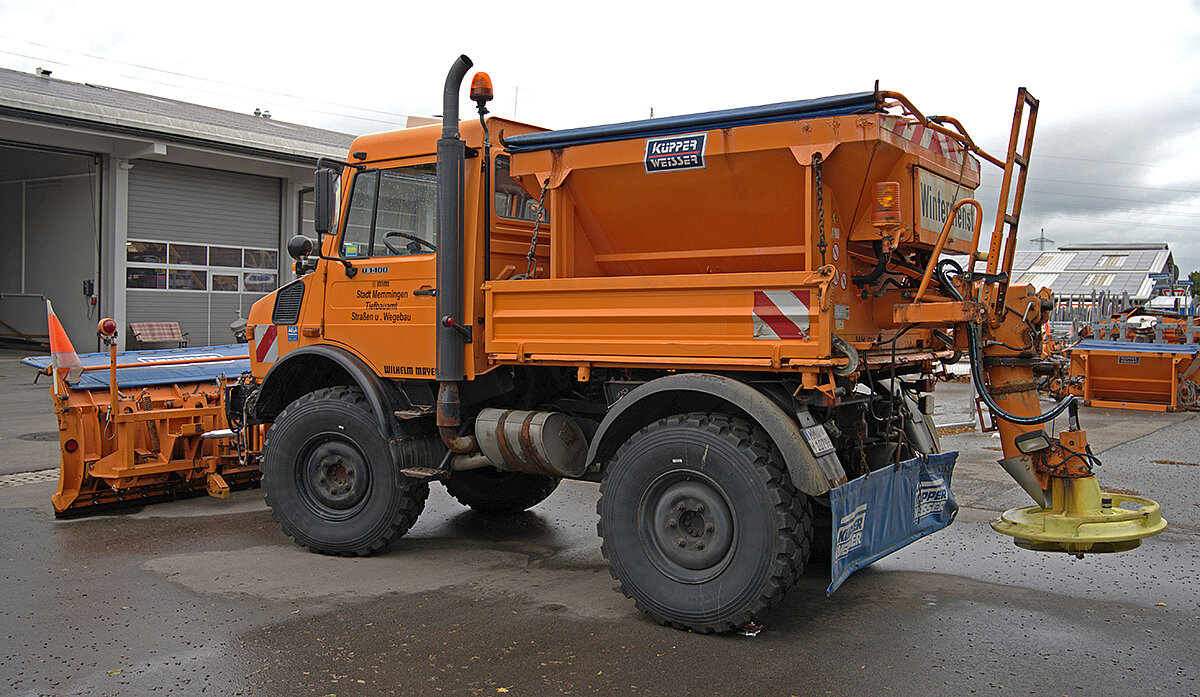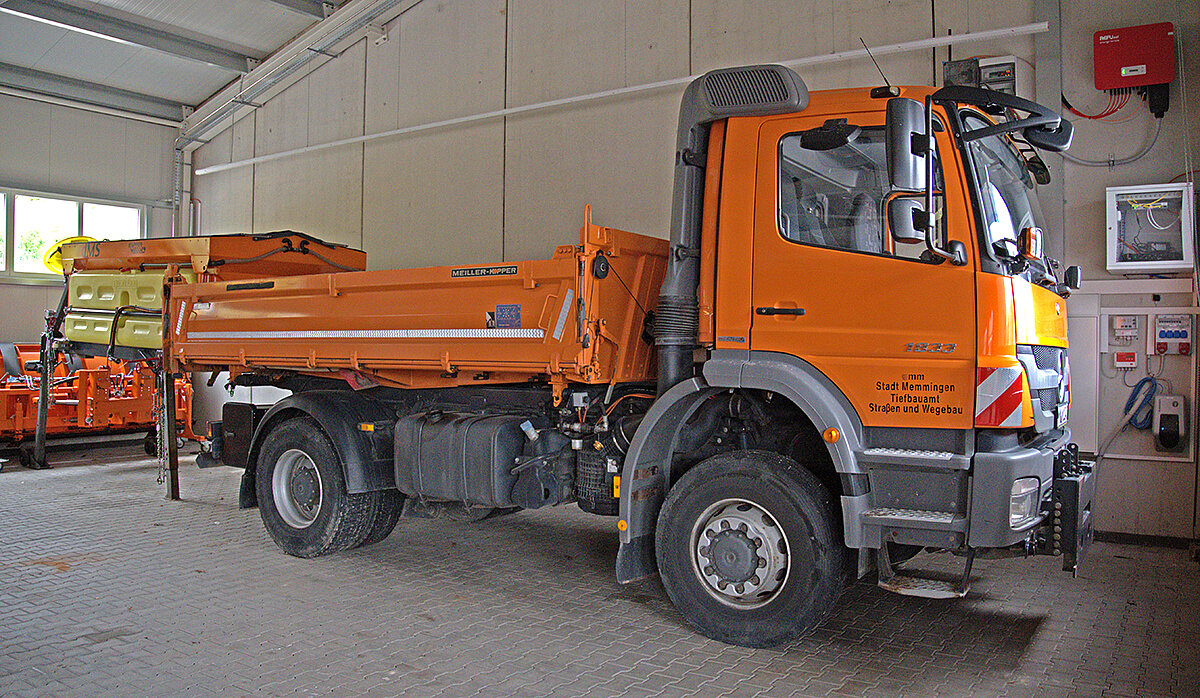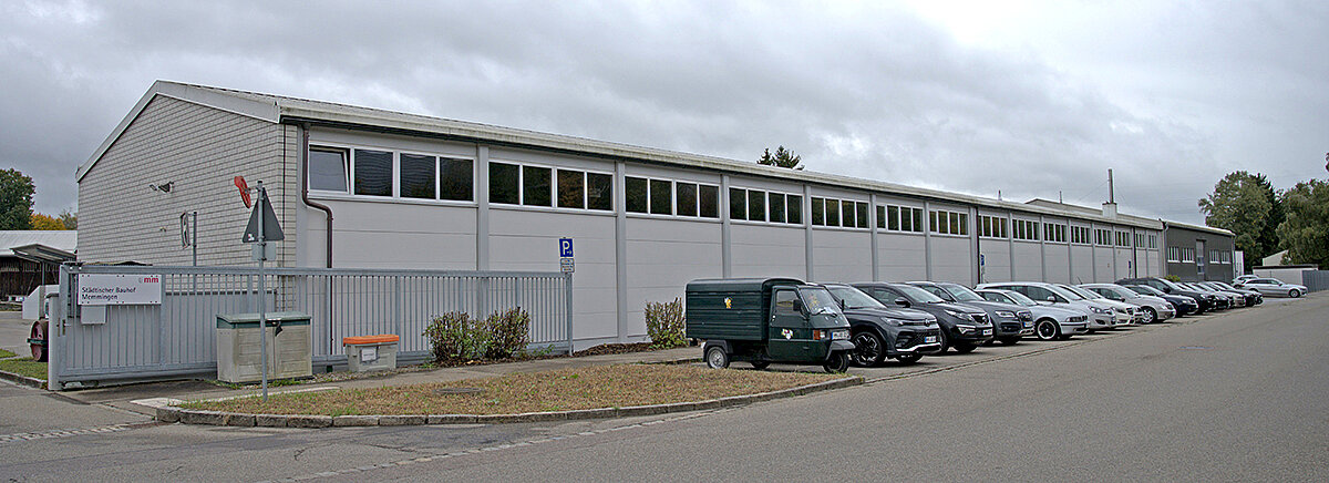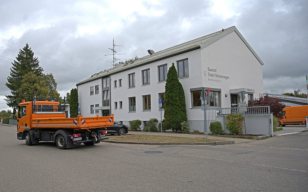 Im Industriegebiet am Schumacherring befindet sich der großzügige städtische Bauhof Memmingen – von außen gut erkennbar an der langen Fahrzeug-Halle, die sich bis zur seitlichen Grenze des Grundstücks zieht. Hinter der Halle liegen weitere Gebäude, die als Holz-Lager dienen oder Werkstatt und Schreinerei beherbergen. Ins Auge sticht auch ein 20 Meter hohes Kunststoff-Silo, das die Bauhof-Mitarbeiter 2017 aufgestellt haben. Es ist mit Logos der Stadt bedruckt und fasst bis zu 150 m³ Trockensalz.