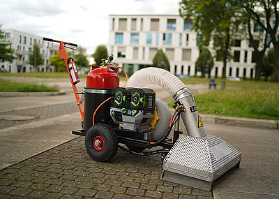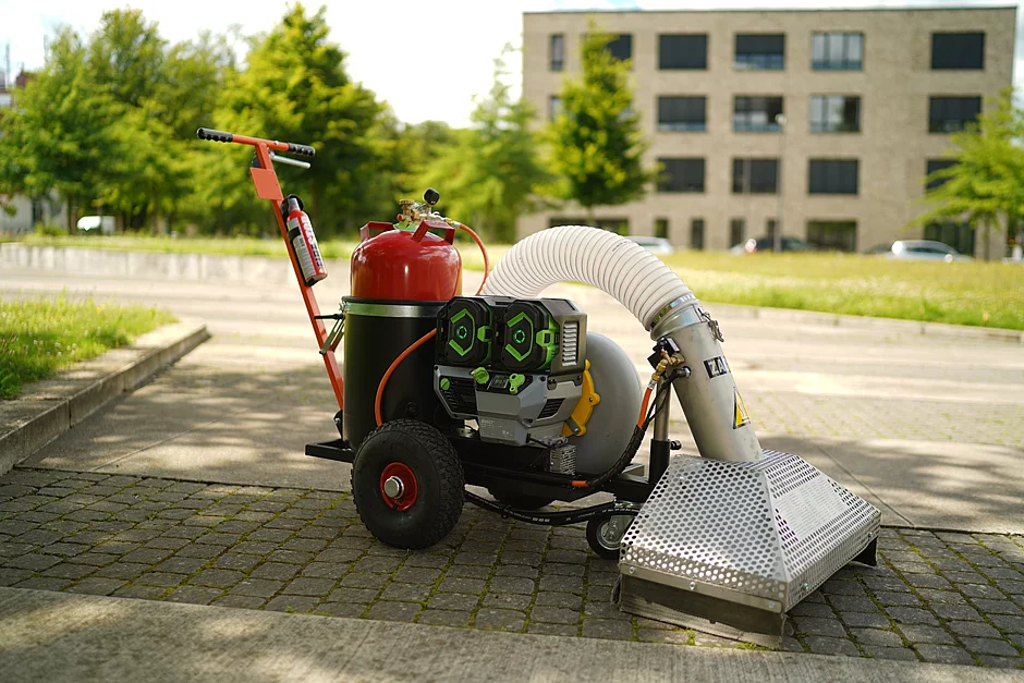 Ein weiterer Vorteil der Heißluftsysteme sind die vergleichsweise geringen Betriebskosten. Verantwortlich hierfür sind die hohe Behandlungsgeschwindigkeit und der niedrige nominelle Gasverbrauch von nur ein bis drei Gramm pro Quadratmeter. Der nach vorne austretende Luftstrom erhitzt das Wildkraut bereits vor dem Brennschirm und ermöglicht durch das Schwenken des Geräts eine flexible Bearbeitung von Bordsteinkanten, Zäunen oder Flächen unter Parkbänken.