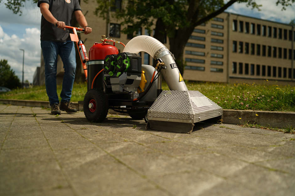 Bei Heißluftsystemen von ZACHO kommt ein patentiertes Turbo-Gebläse zum Einsatz: Durch die hohen Luftgeschwindigkeiten mit Verwirbelungen wird eine schnelle Hitzeübertragung auf den Boden erzielt. Eine Brennkammer erhitzt die angesaugte Luft auf bis zu 800 Grad. Danach wird sie mit großer Geschwindigkeit auf die Wildkräuter geleitet, was ohne offene Flamme eine Minimierung der Brandgefahr gewährleistet. Diese Hitze bewirkt ein schnelles Absterben des Wildkrauts und durch die Verwirbelungen der Heißluft werden die Samen der Wildkräuter keimunfähig, wodurch einer zukünftigen Ausbreitung präventiv entgegengewirkt wird.
