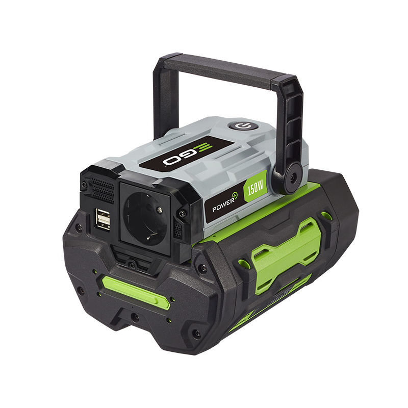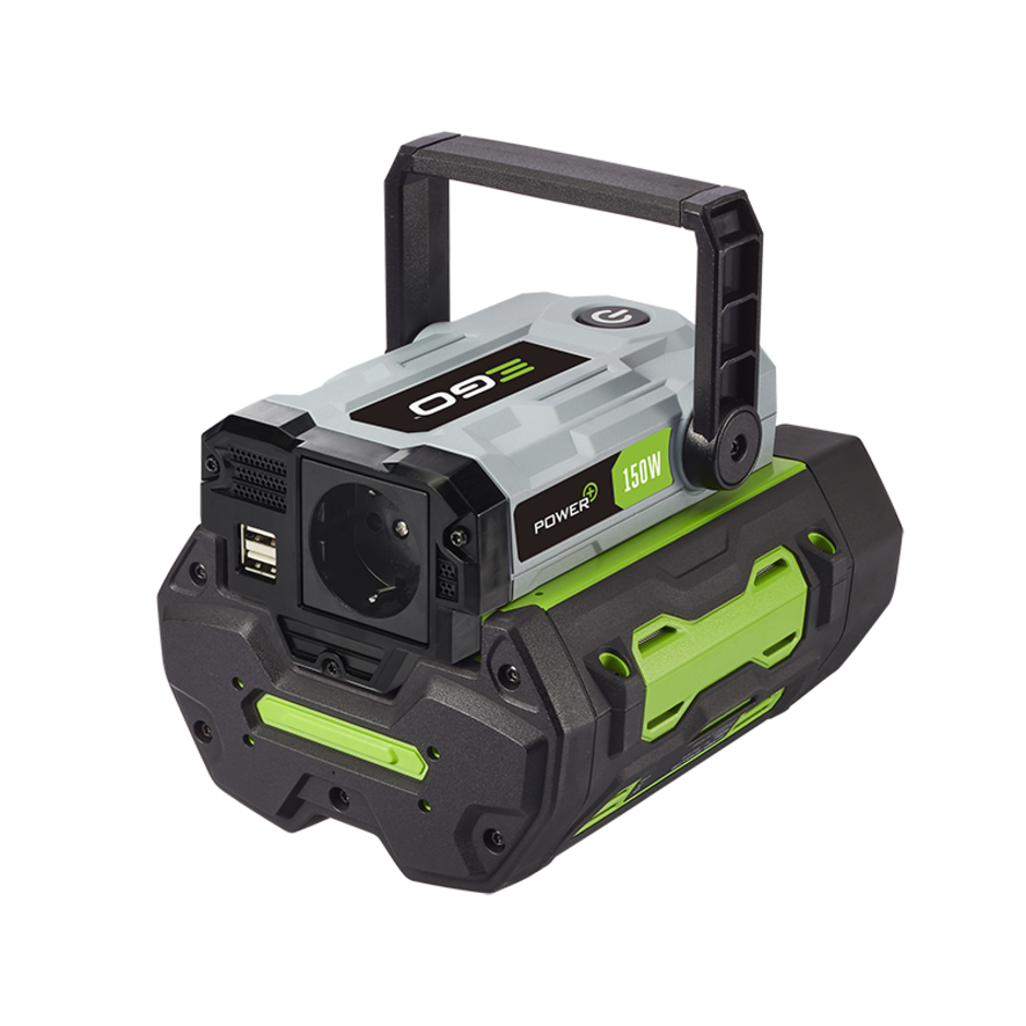 Das kleine Gerät mit Tragegriff ist kaum größer als ein Taschenbuch, nur 0,5 kg schwer und liefere zusammen mit den bekannten 56V-Arc-Lithium-Akkus, die ansonsten in Rasenmähern und Heckenscheren ihren Einsatz finden, immer und überall 230-Volt-Wechselstrom. Bis zu 150 Watt Leistung reichten aus, um beispielsweise einen 42-Zoll-TV für mehrere Stunden zu betreiben, die Drohne unterwegs wieder aufzuladen oder den gemütlichen Abend draußen zu beleuchten.