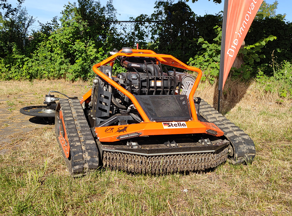 Pünktlich zu Saisonbeginn hat Stella den Auslegemäharm FlexCUT 60 für den URS 100 auf der Tecland-Messe ausgestellt. Dieses sehr nützliche Anbaugerät unterstützt die Mäharbeiten an Wildschutzzäunen, um Pfosten und Bäume und dient zum Ausmähen unter Zäunen. Angebaut wird der FlexCUT am Heck. Zum Transport kann er hochgeklappt werden.