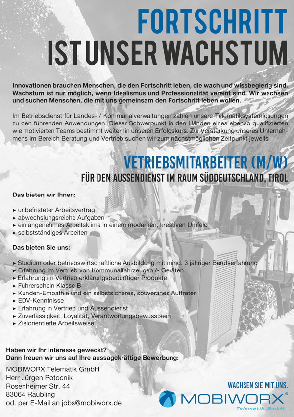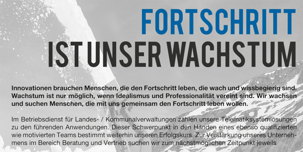 Im Betriebsdienst für Landes- / Kommunalverwaltungen zählen unsere Telematiksystemlösungen zu den führenden Anwendungen. Dieser Schwerpunkt in den Händen eines ebenso qualifizierten wie motivierten Teams bestimmt weiterhin unseren Erfolgskurs. Zur Verstärkung unseres Unternehmens im Bereich Beratung und Vertrieb suchen wir zum nächstmöglichen Zeitpunkt jeweils