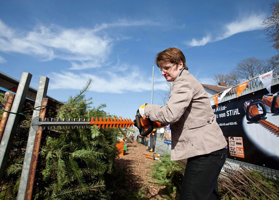 Worauf sollte man beim Kauf von Heckenschere oder Rasentrimmer achten? Wie wählt man aus der Vielzahl der Modelle die richtige Motorsäge aus? Welcher Antrieb passt am besten zum eigenen Bedarf: ein Elektro-, Akku- oder Benzingerät? Die Antwort ist leicht: Sich informieren, in Ruhe testen, verschiedene Geräte miteinander vergleichen und den Rat des Fachmanns einholen. Für diesen unverbindlichen Probelauf bietet der STIHL Test-Tag 2012 die perfekte Gelegenheit. Gartenbesitzer und Freizeithandwerker können sich umfassend beraten lassen, die Motorgeräte der beiden Marken STIHL und VIKING nach Lust und Laune selbst ausprobieren und sich einen Eindruck von Leistung, Qualität und Arbeitskomfort verschaffen.