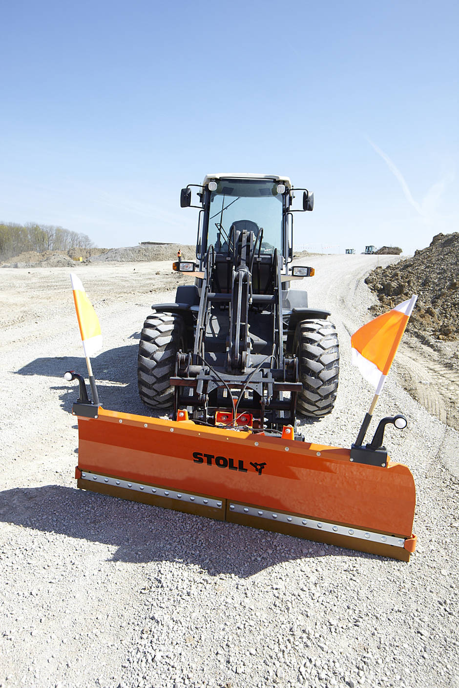 Viel Effizienz bei geringem Verschleiß bieten die für den Frontanbau in Schnellwechseleinheit gebauten Schneepflüge oder Vario-Pflüge von Stoll. Die neuartige Anbaukonstruktion der Serie SSS und SVS passt sich den Bodenverhältnissen optimal an, ist wartungsarm und macht Stützräder und Schleifkufen überflüssig. Durch Gasdruckfedern regulierte Federklappen arbeiten stoßdämpfend und verhindern Rückschlag und lautes Klappen. Vorteile auf einen Blick: stabile verwindungsfreie Konstruktion, gute Abrolleigenschaft des Schnees durch gerundete Bauform, effiziente Räumwirkung und Laufruhe durch tiefliegendem Schubpunkt, geringer Verschleiß, Einsatz bis 60 km/h sowie Anbau an Radlader durch Schnellwechselrahmen mit Parallelausgleich.