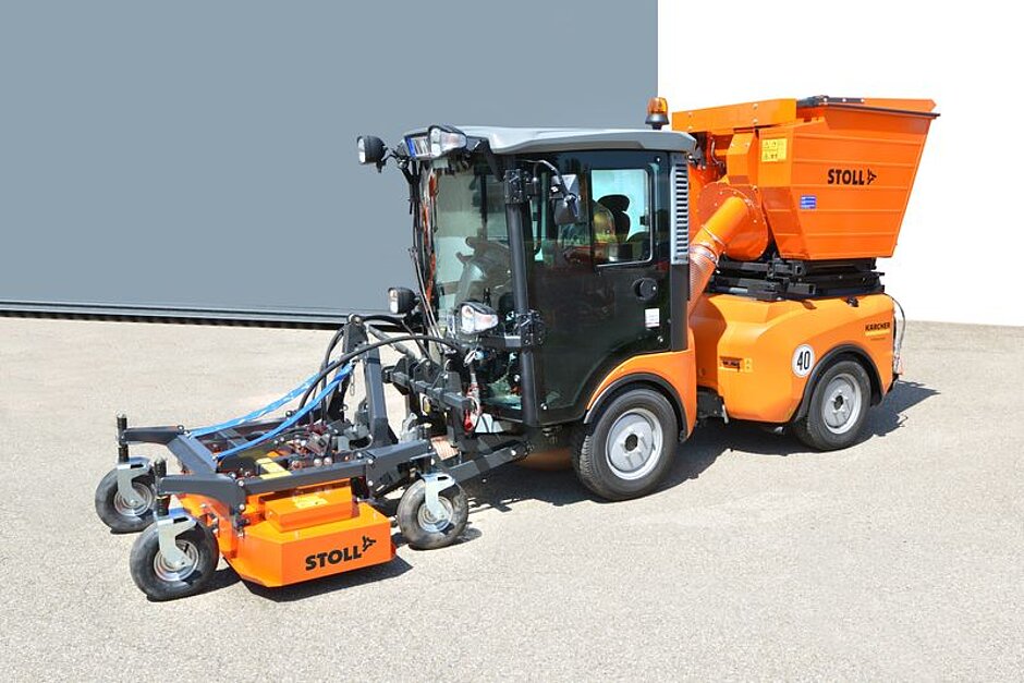 Seit mehr als 45 Jahren entwickelt und baut die Firma STOLL Anbaugeräte an Traktoren und Fahrzeuge. Die Maschinen sind an die Vehikel führender Hersteller adaptiert. Durch die stetige Veränderung der Trägerfahrzeuge ist es die Herausforderung für die Konstruktion, Anbaugeräte für den optimalen Einsatz für Problemlösungen in der Grünflächenpflege zu entwickeln. Aufgrund langjähriger Erfahrung wurde mit der neu gestalteten Mäh-Saug-Kombination eine innovative Lösung gefunden, welche die Anwenderwünsche – mit einem Modell sowohl Mittel- als auch Seitenabsaugung einzusetzen – zufriedenstellt.