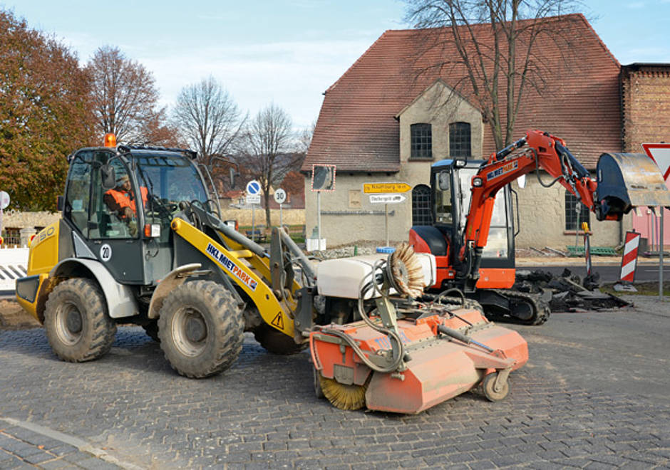 Profis im Straßenbau: Seit vielen Jahren unterstützt und begleitet HKL Unternehmen beim Bau und der Sanierung von Verkehrsinfrastrukturen. Auf diese Expertise vertraute auch GP Verkehrswegebau. Das Team aus dem HKL Center in Halle betreute die Straßenbaustelle von Anfang an, fand schnell die passenden Maschinen und lieferte diese direkt auf die Baustelle. Hier wurden sie für unterschiedliche Arbeiten genutzt: Ein wendiger Radlader aus dem HKL MIETPARK übernahm die Reinigung des gesamten Bauabschnitts sowie der genutzten Transportwege. Dafür wurde die Maschine mit einer Anbaukehrmaschine ausgestattet. Für die Verdichtung des Untergrunds kam ein moderner Walzenzug von HKL zum Einsatz.