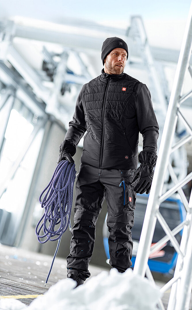 Neu in der Rubrik „beheizbare Arbeitskleidung“ ist die leichte Heizweste „e.s.ambition“ für Herren sowie die sportlich geschnittene Heiz-Hybrid-Kapuzenjacken „e.s.trail“ für Damen. Mit der Drei-In-Eins-Heizjacke „e.s.concrete“ (Kombination aus Heiz-Innenjacke und wetterfester Außenjacke) kommt außerdem eine smarte Variante für kaltes und nasses Wetter mit ins Programm.