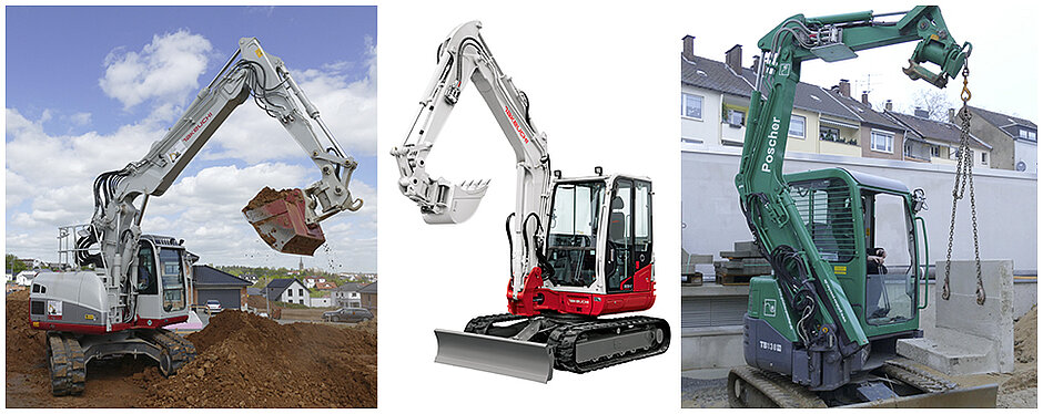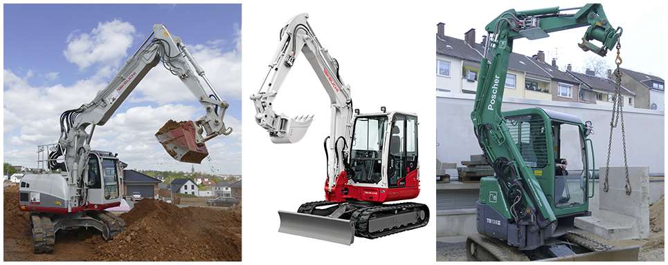 Vom kleinen Ein-Tonnen-Bagger TB 210 bis zum Flaggschiff, dem 15 Tonnen TB 2150 RCV, ist eine für alle Einsatznotwendigkeiten bei Kommune oder GaLaBau passende Baggerflotte vor Ort. Alle Maschinen sind auf hohem Takeuchi-Standard ausgerüstet, so z.B. mit Schnellwechsler, Drehmotor und Taklock. Auch Ausrüstungsvarianten wie der neben der Kabine montierte RCV Verstellausleger oder Modelle wie die Hüllkreisbagger 138 FR und 250 FR sowie der Zehn-Tonnen-Mobilbagger T 295 W-2 werden gezeigt.