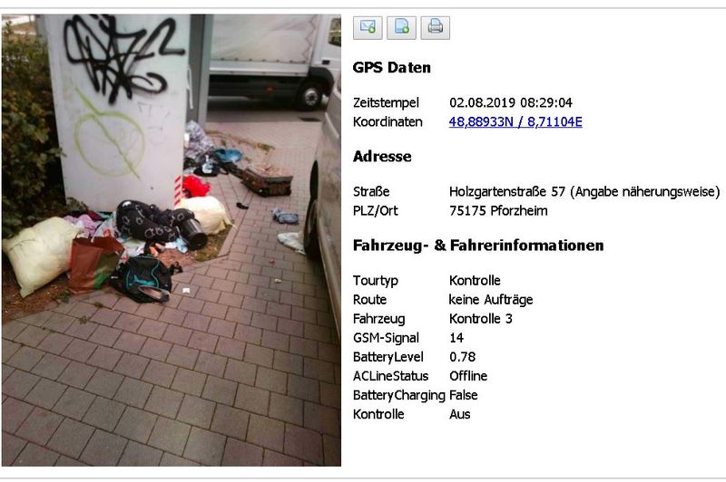 Ein „richtig gutes Tool“ sei dieses TraceMate, weiß der Vater zweier Kinder. In regem Austausch befinde er sich mit den „Kölner ITlern“. Kontrollfunktionen, Alarmierung oder Auswertungsmöglichkeiten habe Hartmann gar selbst angeregt. Zwischenzeitlich rechnet er anhand der GPS-gestützten Daten mit Subunternehmern ab, die beispielsweise den Kehrdienst übernommen haben, erstellt Listen, die wiederum als Leistungsnachweis für die Rechnungsprüfung Verwendung finden. Oder er erhält über die Software Bilder von den Kollegen, die an den „Hotspots“ in Sachen Wildmüll unterwegs sind, und kann sofort Aufräum-Trupps aussenden. Zusätzlich dienen diese Bilder natürlich als Dokumentation. „Ich kann also über das System Aufträge erteilen oder diese als E-Mail weiterleiten.“
