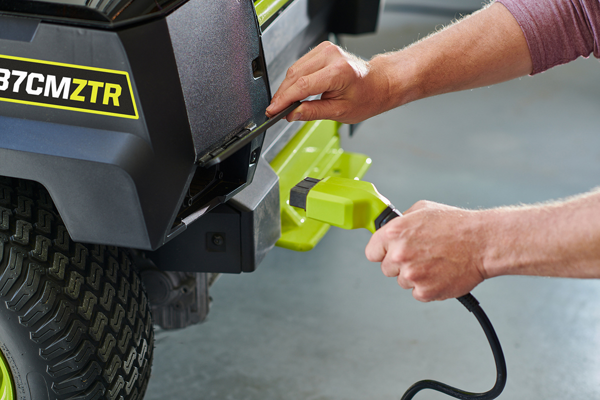 Stabile Mähdecks aus Stahl sorgen für eine lange Lebensdauer. Die bürstenlosen Motoren für Fahrwerk und Mähdeck verfügen über ein besonders hohes Drehmoment und reduzieren den Wartungsaufwand. Denn im Unterschied zu herkömmlichen Elektromotoren gibt es keine Kohlebürsten, die verschleißen und getauscht werden müssen. Anwender können sich bei den Aufsitzmähern nicht nur auf maximale Leistung und starke Ausstattung, sondern auch auf Qualität und lange Lebensdauer verlassen: Die Garantiezeit beträgt bei allen Geräten und Akkus von Ryobi drei Jahre.