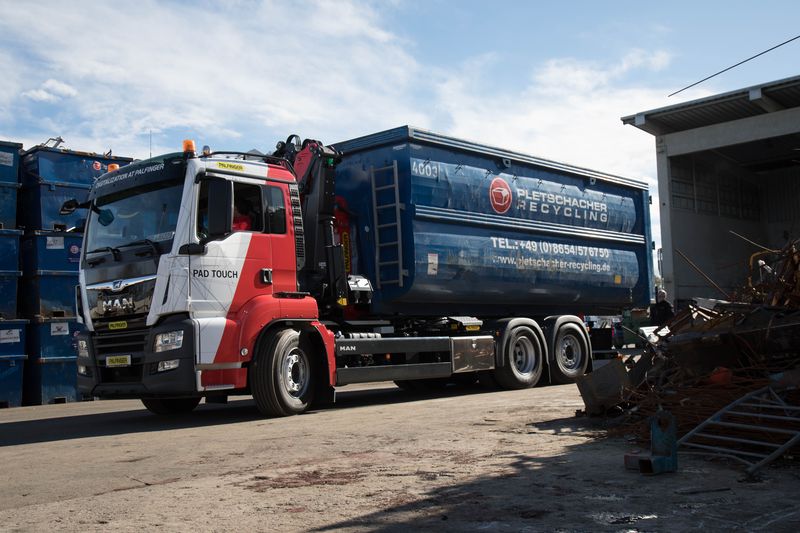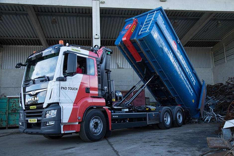Eine echte Weltneuheit bei der Baureihe TEC ist das intelligente Steuersystem PAD Touch. Es eröffnet eine Vielzahl an neuen Möglichkeiten. Auf dem Touchscreen werden die Bewegungen des Behälters und der verschiedenen Sicherheitssysteme angezeigt. Zusätzlich wird mit dem Bild der Heckkamera das Aufnehmen des Behälters erleichtert. Mit der neuen Kabinensteuerung kann der Fahrer die Bewegungen präzise steuern. Optional erhöht die automatische Folgesteuerung die Sicherheit und Wirtschaftlichkeit bei der Bedienung zusätzlich. Durch sie kann der Bediener mit nur einem Hebel den gesamten Aufnahme- und Abrollvorgang sowie Kippvorgang steuern. Weitere Komfortfunktionen wie Eilgang, Schnellabsenkung, Soft Sliding und Soft-Stop beim Aufziehen und Kippen schonen den Abrollkipper und erhöhen die Effizienz.