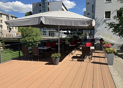 TRIMAX enthält keinerlei Holzanteil, benötigt keine Pflege, ist problemlos mit einem Hochdruckreiniger zu säubern und kann ohne Spezialwerkzeug bearbeitet werden. Es handle sich somit – aufgrund seiner Vorteile – um ein ideales Baumaterial für vielfältige Bereiche, wie z. B. Balkone, Terrassen, Brücken oder Bootsstege. Darüber hinaus sei es ein ökologischer Baustoff, der aus dem Recycling komme und auch wieder dem Wertstoffkreislauf zugeführt werden könne.