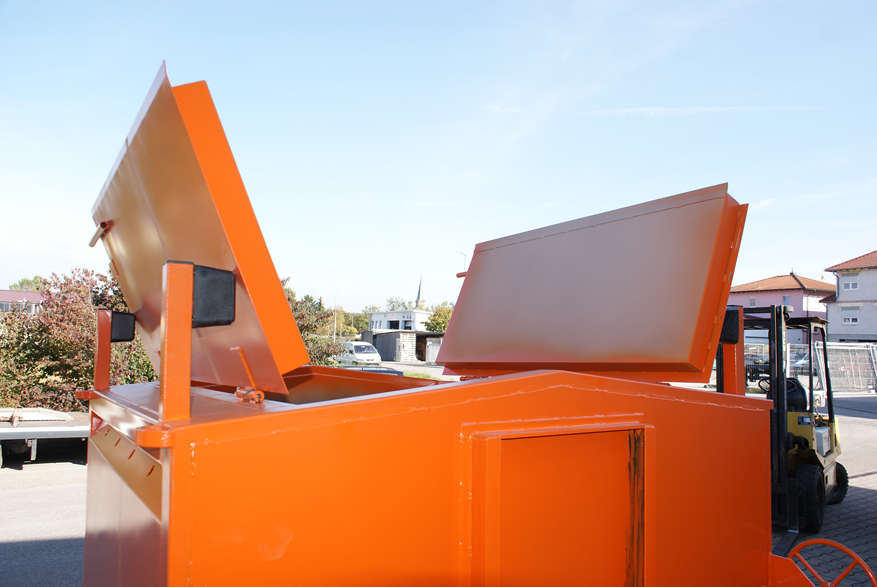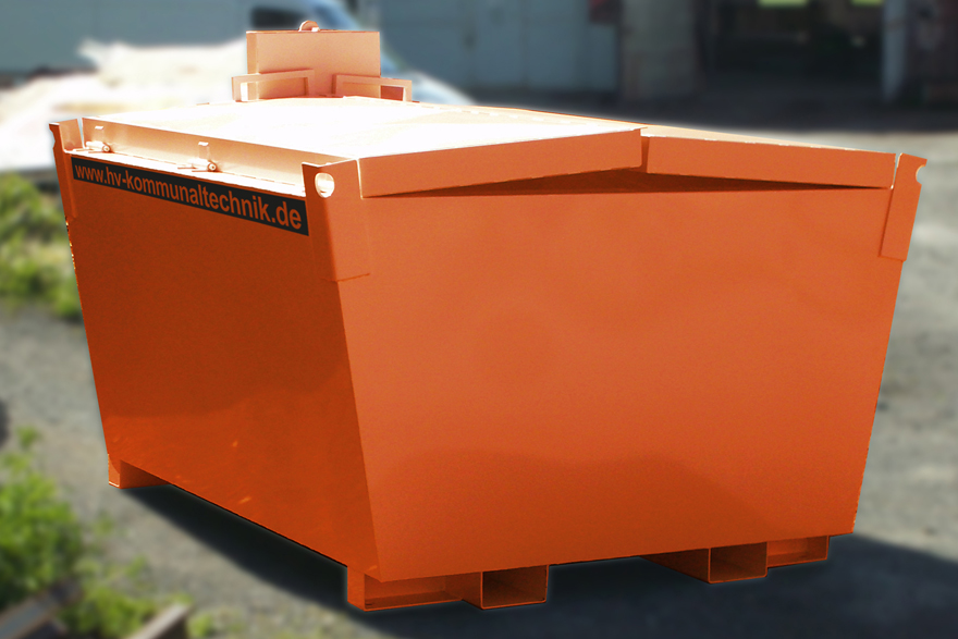 Wenn vermehrt bituminöse Sanierungsarbeiten anfallen, ist es hilfreich, den Asphalt wärmegeschützt zu transportieren. Dies geschieht mit unserem Thermo-Silo. Das Mischgut kann so für einen Zeitraum von ca. 12 Std. warmgehalten werden. Eine schnelle Materialabkühlung stellt somit kein Problem mehr dar, und die Zeiten der Materialabdeckung mit Planen sind vorbei. Unser Thermo-Silo wird über die oben angebrachten Deckelklappen befüllt und kann mit Kran, Bagger oder Gabelstapler verladen werden. Durch die Bauweise wird eine bestmögliche Restmengenentleerung erreicht.