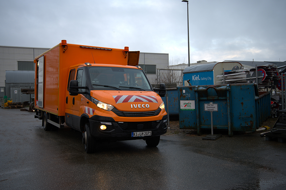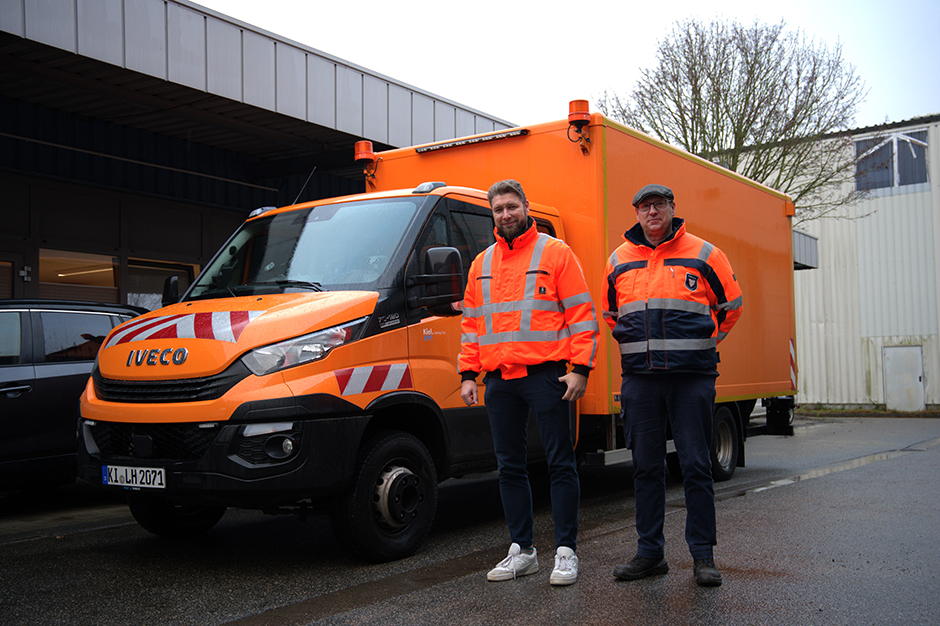 „Bei uns wird alles erledigt, was bei Unterhaltungsmaßnahmen ansteht, bei Straße und Kanal“, erklärt Martin Klein, Sachbereichsleiter Bauhof, während er seine Aufzeichnungen überfliegt. Wie in jedem Winter sind seine Mitarbeiter zurzeit mit der Behebung von Straßenschäden beschäftigt, welche durch den Frost-Tauwechsel entstanden sind. Bei Straßenunterhaltungen unterscheiden die Kieler zwischen kleineren und größeren Schäden. „Erstmal nehmen wir die Schäden auf. Was wir dann an Reparaturen machen können, wie Kleinstflächenreparaturen, Schlaglöcher oder Pflasterarbeiten, das machen wir selbst. Alles, was größer ist, wird über Zweitfirmen gemacht.“ Hier bestehen einige Jahresverträge.