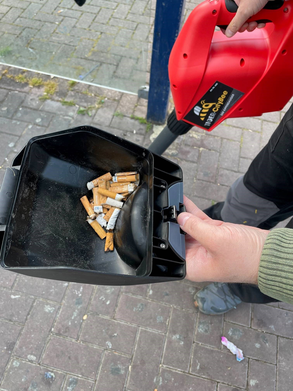Eine Abhilfe schafft der Kippensauger. Dieses patentierte Akkugerät wurde eigens konstruiert, um störende und gefährliche Abfälle punktuell zu beseitigen. Es besteht aus einem Gehäuse mit einer 75 cm langen Sauglanze. In seinem Inneren sind eine kräftige Turbine und eine spezielle Abscheidevorrichtung untergebracht. Aufgenommene Abfallpartikel werden darin von der Saugluft abgetrennt und in einem abnehmbaren Auffangbehälter (1,5 l Füllvolumen) gesammelt.
