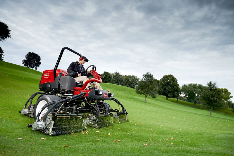 Trotz der Kompaktheit entfaltet der Reelmaster seine volle Leistung mit seinem kraftvollen 18,5 kW (24,8 PS) starken Kubota-Motor: Ein Re-Design der Dichtungen mit nun geringerem Widerstand sowie verbesserte Lagern sorgen dafür, dass die Antriebskraft ohne Kraftverlust an die Mähwerke übertragen wird. Die neuen DPA-Schneideinheiten mit den neuen Edge Series-Spindeln (8 Messer) ermöglichen eine komfortable Schnittbreite von 254 cm und sind auch dank der einfachen Zugänge schnell und leicht zu warten. Variable Schnitthöhen von 6 bis 25 mm sind Standard, ein optional erhältliches Kit verarbeitet Gras bis zu 38 mm Schnitthöhe. Auch den Antrieb haben die Toro-Ingenieure nochmals optimiert, so dass auch bei nassem Untergrund und Hanglagen der Reelmaster jederzeit optimale Traktion hat und sich sicher vorarbeiten kann – selbst bei aktivierten Groomern und Heckrollenbürsten. Der patentierte Series/Parallel-Dreiradantrieb gibt mindestens zwei Rädern gleichzeitig Vortrieb, so dass eine anspruchsvolle Grünpflege selbst bei Gefällen und auch seitlich zum Hang möglich ist.