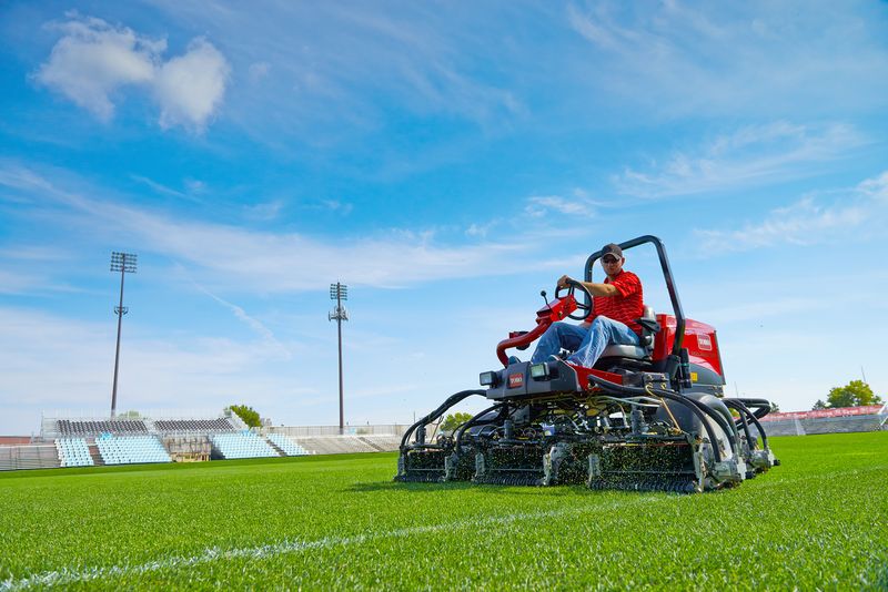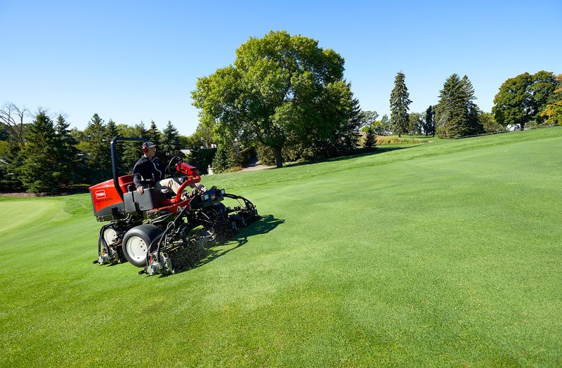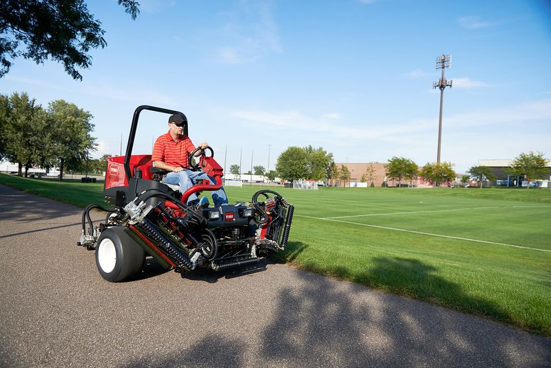 Der natürliche Lebensraum des Reelmaster 3575 mit nur 1.156 kg Gewicht sind Golf- und Sportanlagen, darunter auch Bundesliga-Plätze. Diese Flächen werden teilweise stark beansprucht und bespielt, dennoch sollen sie stets repräsentativ, topgepflegt und einladend sein. Ein gleichmäßiges Schnittbild, ein dichter und satter Rasen ohne kahle Stellen sowie millimetergenaue Präzision auf Golfplätzen und Sportanlagen sind die Anforderungen an die Greenkeeper und ihren Maschinenpark. Um all diesen Qualitätsansprüchen gerecht werden zu können, brauchen Greenkeeper und Garten- und Landschaftsbauspezialisten den passenden Mäher. Ein Mäher, der sowohl die notwendige Präzision beim Mähen des Fairways auf dem Golfplatz mitbringt, aber auch schnell, wendig und schonend zum Grün ist – über alle diese Merkmale verfügt der neue Reelmaster 3575 von Toro.