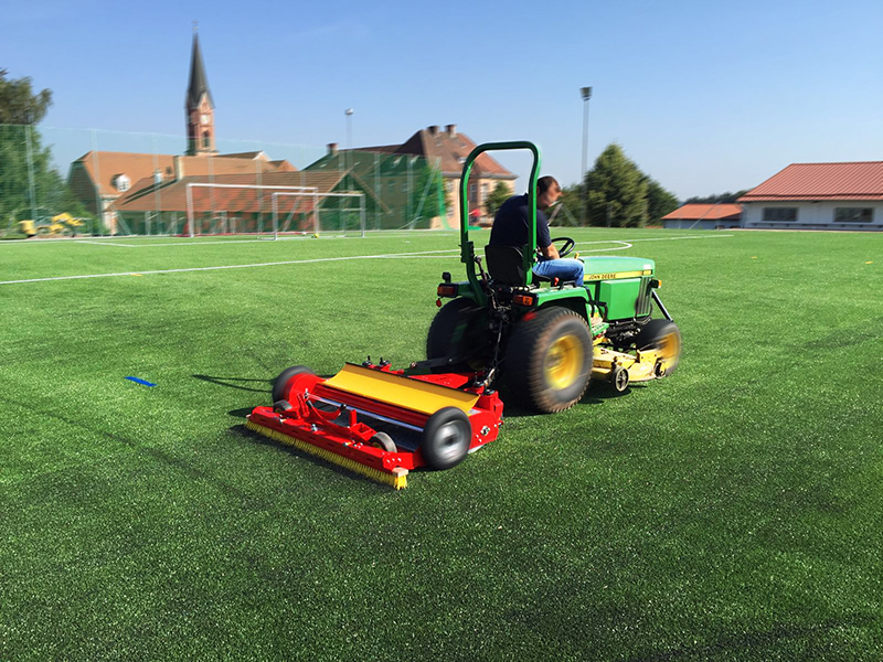 In der Regel übernimmt ein Platzwart die Arbeitsschritte der regelmäßigen Unterhaltspflege im Rahmen seiner Wochenaufgaben. Dazu gehören Sichtkontrolle von Linien und Nähten, speziell aber die Oberflächenreinigung mit dem Aufbürsten der Kunstrasenfaser des Spielfelds und der kontrollierten Rückführung von Einfüllmaterialien.