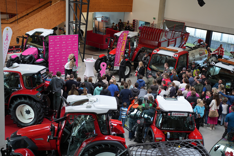 Ein Anziehungspunkt im Lindner-Innovationszentrum: die Weltpremiere des Lintrac in der „Melissa“-Edition. Der pink lackierte Traktor wurde von Sängerin Melissa Naschenweng persönlich signiert und ist im Laufe des Jahres bei mehreren Events in ganz Österreich zu sehen. 10.000 Euro aus dem Verkaufserlös kommen der Beratung und der Hilfe von Brustkrebspatientinnen zugute.