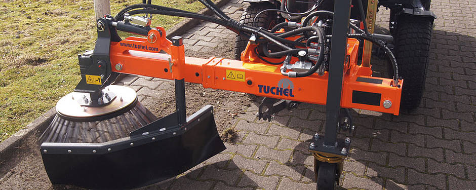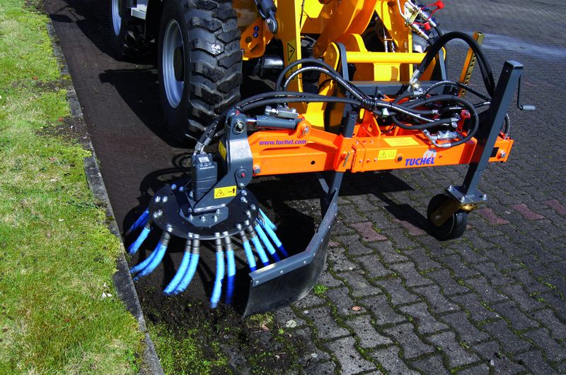 „Die Vorteile gegenüber vielen Wettbewerbsmaschinen liegen im größeren Tellerbesen (750 mm), im starken Danfoss OMS Motor und in der teleskopierbaren Seitenverschiebung, die den Einsatz der Wildkrautbürste flexibel macht. Durch die variable Seitenverschiebung (bis 450 mm) sind die Anbaumöglichkeiten vom kleinen Kommunalschlepper bis hin zu 5 t Ladern gegeben. Die große Resonanz auf der Messe hat uns gezeigt, dass wir mit dieser Maschine auf dem richtigen Weg sind.“ betont M. Roos (Konstrukteur Fa. Tuchel).
