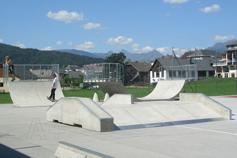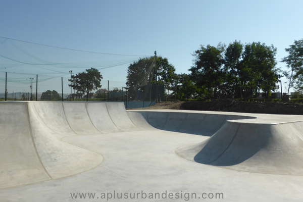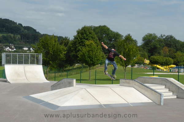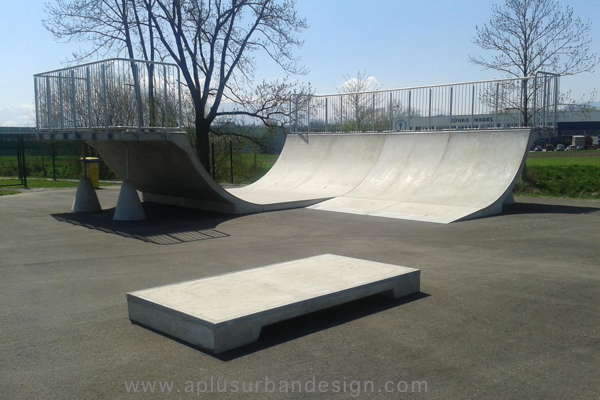 Die modularen Skateelemente aus Beton der Firma A+ URBAN DESIGN wurden in den 90er Jahren entwickelt. Diese ermöglichen eine sehr große Vielfalt an Kombinationen.