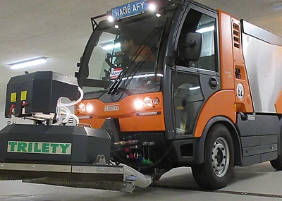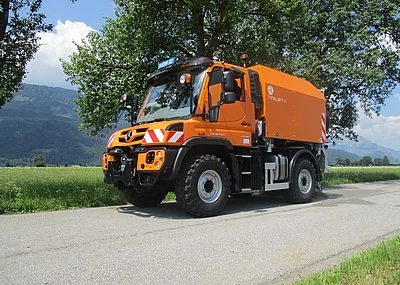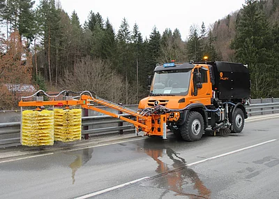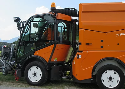 TRILETY hat seinen bewährten Straßenwaschbalken WBH überarbeitet und optimiert. Der WBH 25 passt u. a. perfekt auf das Multicar M29-Trägerfahrzeug, ist serienmäßig hydraulisch schwenk- und ausfahrbar sowie mit einer Ausweicheinrichtung gegen seitliches Anfahren ausgestattet. Sowohl das Düsenrohr als auch die Wasserdüsen sind aus V2A gefertigt, das Führungsrohr ist verzinkt. Die Waschbreite beträgt 1400 bis 2600 mm.