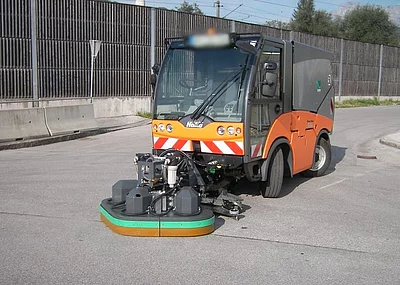 Für eine optimale Reinigung der Straßen im Innenstadtbereich wurde der Waschbalken mit seitlichen Froschmauldüsen ausgestattet. Die Zusatzdüsen sind ebenfalls hydraulisch schwenkbar und elektrisch vom Fahrerpult aus höhen- und seitenverstellbar. Durch das Umschalten von links nach rechts kann in engen Straßen auf beiden Seiten, z.B. unter parkenden Autos, problemlos gereinigt werden.