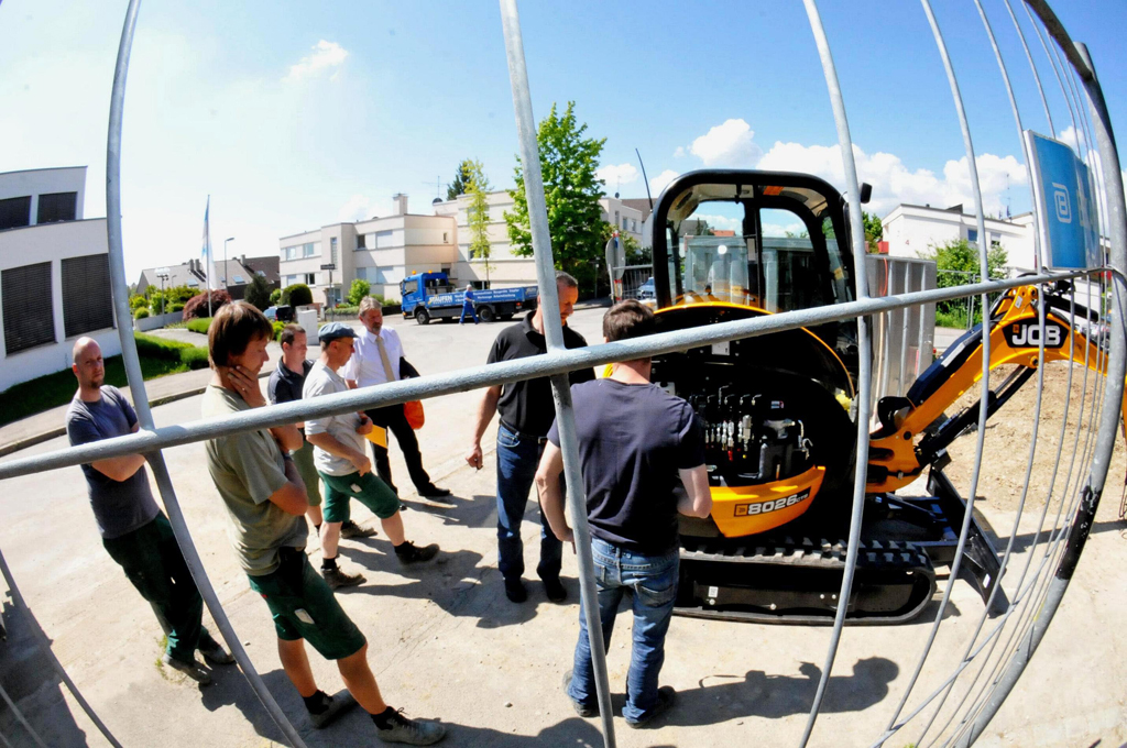 Die Szene spielte sich jüngst auf der Baustelle eines Spielplatzes in Stuttgart-Vaihingen ab, als die Göppinger Firma Staufen Baumaschinen einen funkelnagelneuen Minibagger JCB 8026 CTS an den Neukunden übergeben hat.