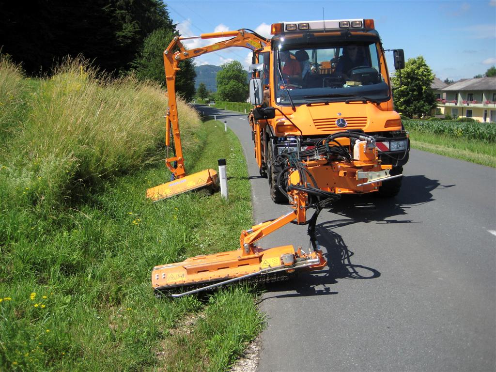 Vom Frühjahr bis in den Herbst sind extensive Mäheinsätze und Unterhaltungsarbeiten entlang des rund 2746 km langen Straßennetzes des Landes Kärnten angesagt, zu denen sich weitere 48 km aus dem Verantwortungsbereich der Grohag addieren. Die lange Winterperiode hat tiefe Spuren auf vielen Straßen hinterlassen, die von beiden Partnern schnell repariert sowie während der sommerlichen Touristensaison in Ordnung zu halten sind. Durch seine niedrige Bauhöhe und die Profi-Ausrüstung mit einer Unimog-Mähtüre, einem Mulag-Randstreifenmäher MRM 300 und einem Heckausleger-Mähgerät MHU 800 ist der U 500 ideal geeignet für das Ausmähen von Distanzen bis zu 7,3 m, gemessen ab der Fahrzeugmitte. Gründliche Mähergebnisse werden sowohl links als auch rechts der Straße erzielt, sogar Einmann-Betrieb ist möglich.
