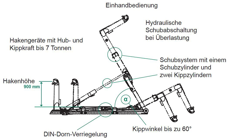 Fortan seien alle Abrollsysteme mit dem eigens entwickelten und produzierten Hakenlift mit Sanftanlauf ausgestattet. Ein ruckartiges Absetzen von Containern gehöre aufgrund des neuen Systems der Vergangenheit an, da der Abrollbehälter durch die intuitive Bedienung des Abrollhakens nun kontrolliert und geräuscharm am Boden aufkomme. Von der Sanftanlaufsteuerung profitierten auch die hochwertigen Fahrzeugkomponenten, da sie hierdurch mehr geschont werden. Höchsten Komfort, sowohl bei der Aufnahme als auch beim Kippen der Behälter, garantiere die Funkfernbedienung mit optimierter Energieversorgung. Damit seien alle hydraulischen Funktionen einfach und bequem per Knopfdruck zu steuern. Weitere Vorzüge biete die modulare Bauweise des Abrollsystems, die zahlreiche Optionen zur Nachrüstung des Fahrzeugs ermögliche. Dazu gehöre zum Beispiel die Kranvorbereitung oder eine hydraulische Verriegelung, die zur Sicherung des Containers genutzt werden kann. Des Weiteren gewährleiste die Hydraulik am Heck, einen angehängten Kipper oder Sinkkastenreiniger zu bedienen.