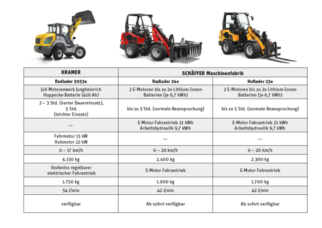 Ganz anders fällt da die Meinung von Bernd Allgeier aus, der im Allgäu im Schnellbaudienst tätig ist. „Aktuell haben wir auf unserer Baustelle wieder einen Elektro-Radlader angemietet“, berichtet er. Beim Fahren der Maschine würde man keinen großen Unterschied zum Dieselfahrzeug bemerken. „Die E-Maschine hat meiner Ansicht nach sogar mehr Power von Anfang an“, sagt Allgeier. Obwohl der Radlader nonstop im Einsatz ist, würde er einen ganzen Arbeitstag problemlos durchhalten. „Wir laden die Maschine während den Pausen immer wieder auf. Das ist ja kein Problem, der Radlader wird einfach mal für eine halbe Stunde an die Steckdose gehängt“, so Allgeier. Die Maschine werde für Aushub-Arbeiten oder beispielsweise auch für den Transport von Beton eingesetzt. Bislang habe ihn und seine Kollegen der Akku der E-Baumaschine noch nie im Stich gelassen. Die Einsatzgebiete des Radladers sind dabei ganz verschieden. Doch eines haben sie alle gemeinsam: Es handelt sich jedes Mal um emissionssensible Umgebungen – wie z.B. Umbaumaßnahmen in der Halle eines Herstellers, der Kartonagen für die Lebensmittelindustrie fertigt. Die Hygiene-Vorschriften untersagen hier den Einsatz eines Verbrennungsmotors bei laufendem Betrieb. Mit einer Elektromaschine ist das Arbeiten zwischen den Kartonagen hingegen kein Problem. Den einzigen Kritikpunkt, den Allgeier derzeit im Hinblick auf die Elektromaschinen nennen kann, ist der Service: „Die Werkstätten kennen sich mit den Maschinen einfach noch nicht so gut aus.“ Doch er ist optimistisch: „Das wird sich sicher ändern, sobald mehr von ihnen im Einsatz sind.“