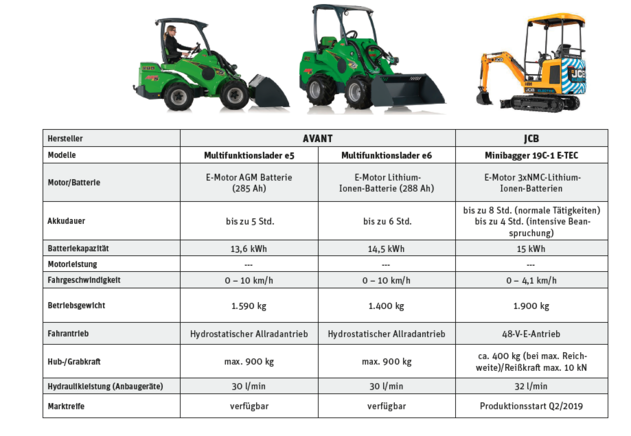 Wenn Baumaschinen am Werk sind, gehören Lärm und Abgase zum Tagesgeschäft. Vor allem im innerstädtischen Raum wird das mitunter immer mehr zum Problem – nicht nur wegen der aktuellen Feinstaubdiskussion. Besonders lärm- und emissionssensible Einsatzbereiche wie beispielsweise Wohngebiete, Parkanlagen von Krankenhäusern, Friedhöfe oder im Inneren von Gebäuden stellen mit den dieselbetriebenen Maschinen eine Herausforderung dar. Da wundert es niemanden, dass auch die Hersteller von Baumaschinen, einer nach dem anderen, ein E-Modell in ihr Produktportfolio mit aufnehmen. Auf der anstehenden bauma 2019 in München sind dahingehend wieder eine ganze Reihe von Premieren geplant. Das Hauptaugenmerk für Elektrovarianten liegt derzeit ganz klar auf den kleinen, kompakten Maschinen, was neben den oben erwähnten Einsatzgebieten nicht zuletzt auch dem derzeitigen Leistungsstand der Akkus geschuldet ist. Genau diese Maschinenkategorie – zwischen einer und 4,5 Tonnen – ist es auch, die bei Bauhöfen, Straßenmeistereien, Galabauern und anderen kommunalen Dienstleistern zum Einsatz kommt. Aber können die E-Maschine auch wirklich dieselbe Leistung bringen, wie ihr dieselbetriebenes Pendant? Wir haben sie genauer unter die Lupe genommen und uns dabei auf „fahrbare“ Maschinen beschränkt – Geräte wie beispielsweise Vibrationsplatten oder Stampfer bleiben außen vor.