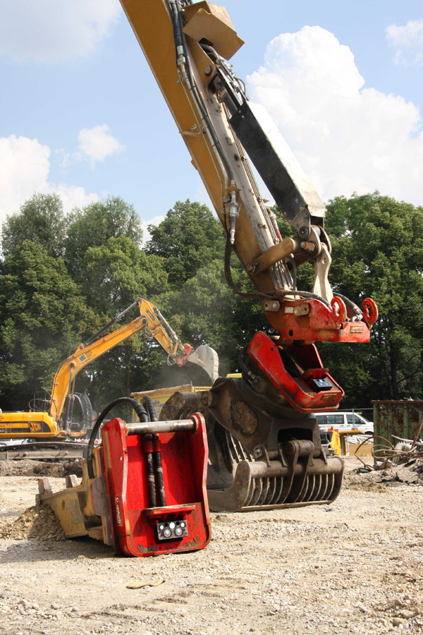 Bagger haben sich in den letzten Jahren mehr und mehr zu Multi-Funktions-Maschinen gewandelt. Möglich wurde dies auch durch die rasante Entwicklung von Schnellwechselsystemen wie dem vollhydraulischen Variolock-System von Lehnhoff. Damit lassen sich die Prozesse auf den Baustellen inzwischen soweit optimieren, dass sich mitunter sogar mehrere Bagger auf einer Großbaustelle einsparen lassen.