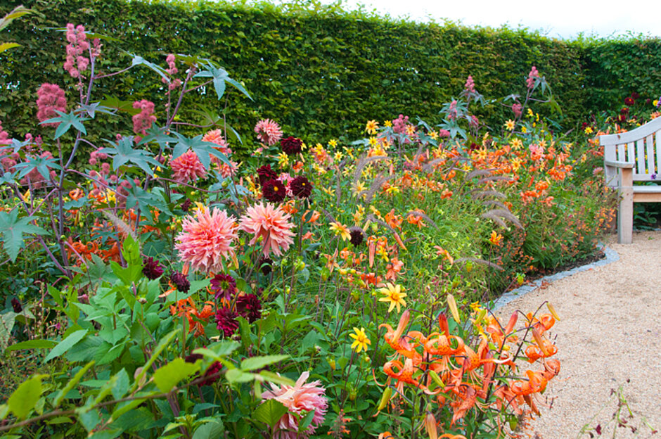 Riesig, gigantisch und imposant, sowohl im Hinblick auf die Formen als auch auf die Farben! Kurz gesagt: XXL! Angenehme sommerlich warme Farbtöne, die das Herz bis in den Herbst erwärmen. Ebenso elegante wie dekorative Lilien bilden im Hochsommer hübsche Farbakzente.