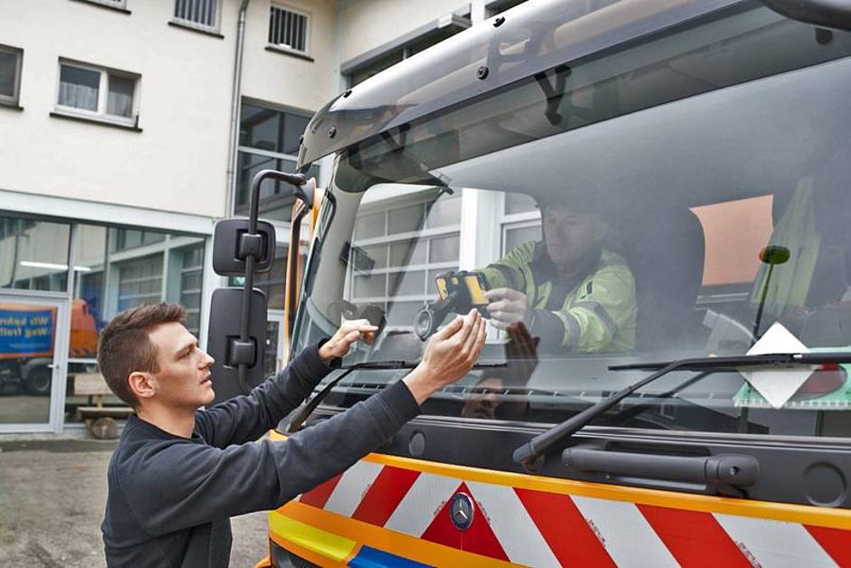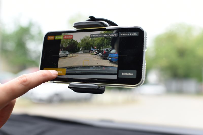 Das Sammeln der Daten erfolgt fast schon beiläufig während der ohnehin täglich stattfindenden Fahrten der Bauhofmitarbeiter. Ein modifiziertes Smartphone, das an der Windschutzscheibe solch kommunaler Fahrzeuge spielend leicht angebracht werden kann, nimmt alle vier Meter ein Bild der Straßenoberfläche auf und erfasst damit detailliert den Ist-Zustand der Straßen. Sobald das Smartphone mit dem Wlan verbunden wird, überträgt es auch schon die erhobenen Daten an vialytics.
