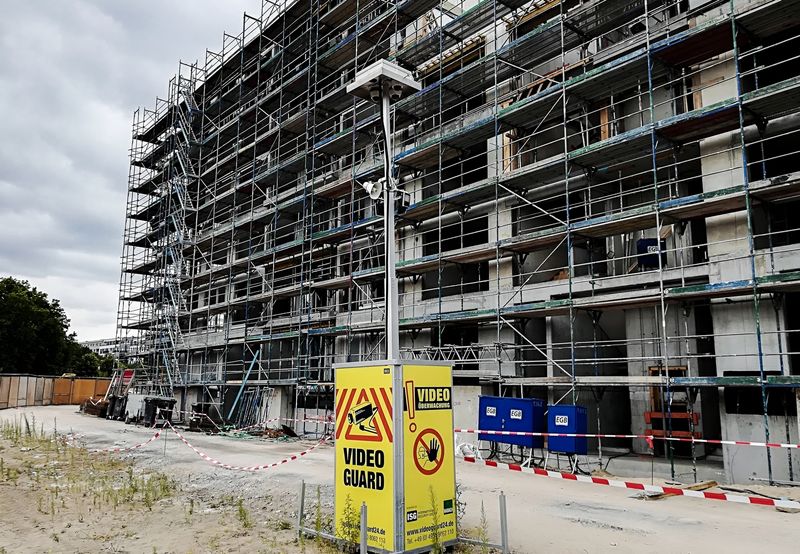 „Viele dunkle Bereiche machen die Baustelle in der Berliner Heidestraße zu einem attraktiven Anlaufpunkt für Diebe und Vandalen“, erklärt Norman Petholz, Vertriebler der ISG. „Denn da vor Ort bisher recht wenige Menschen wohnen, sind die Bereiche nur selten frequentiert.“ Zugleich herrsche zeitweise durch Besichtigungen auf den Baustellen außerhalb der Arbeitszeiten reger Betrieb. Für die Flächensicherung gilt es hier also mindestens zwei Dinge zu beachten: Erstens wird ein System benötigt, das auch bei Dunkelheit und Unübersichtlichkeit effektiv schützt – zweitens muss dieses datenschutz- und compliance-konform gestaltet sein.