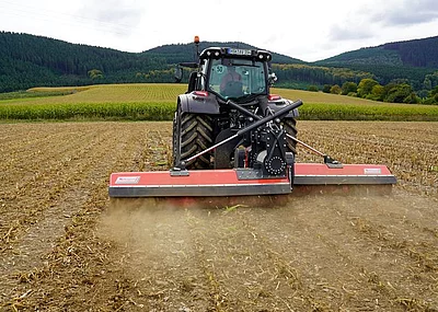 Derzeit umfasst der Fuhrpark von Elmar Löher die MDB-Modelle LV 500 PRO sowie die LV 800, welche auch für anspruchsvolle Forstarbeiten genug Power bietet. Zusätzlich zum Standard-Mulchkopf von DRAGONE besitzt Löher einen Forstmulcher und eine FSI H 52 Stubbenfräse, womit ebenfalls in Steilhanglagen Baumstubben sicher entfernt werden können. Mit einer Anbauschaufel ausgestattet, wird die MDB LV 800 zu einem sicheren Transportmittel für die Materialbergung im Hang. Insgesamt bietet VOGT mehr als 35 verschiedene Anbaugeräte für die Raupen an, die in diversen Gebieten zum Einsatz kommen. MDB-Raupen sind durch ihre spezielle Bauart mit niedrigem Schwerpunkt, breitenverstellbarem Fahrwerk und patentierter Motorölschmierung in Schräglagen bis zu 70 Grad einsetzbar. Diese Hangstabilität wird bei Löhers Forsteinsätzen auch benötigt. Dabei minimieren die großen Aufstandsflächen der Raupenlaufwerke den Bodendruck auf ein vertretbares Maß von etwa 170 g/cm². „Das bodenschonende Arbeiten wird bei unseren stark verdichteten Kulturflächen immer wichtiger“, so Löher. Deshalb sollten beim Mulchen in Steilhängen bodenschonende Maschinen genutzt werden, da sonst immer weniger Oberflächenwasser durch die zu stark verdichteten Böden aufgenommen werden kann.