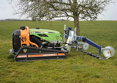 „Als gelernter Forstwirt und Forstwirtschaftsmeister kehrte ich diesem Beruf zunächst den Rücken“, erzählt der drahtige Sauerländer. So machte er zunächst eine zweite Ausbildung zum IT-Kaufmann und wollte anschließend eigentlich ein eigenes Fitnessstudio eröffnen. Zu dieser Zeit entdeckte er seine große Leidenschaft für das Klettern und wurde Fachagrarwirt für Baumpflege und Baumsanierung. So verband er seinen ursprünglichen Beruf mit seinem neuen Hobby und gründete im Jahr 2007 einen Baumpflegebetrieb. In den folgenden Jahren wurde dem Unternehmer klar, dass er sich weiter spezialisieren musste, um sich deutlich vom Wettbewerb abzuheben. So wurde er auf das Unternehmen VOGT in Schmallenberg-Felbecke aufmerksam. VOGT verkauft Profitechnik für die Landschaftspflege und hat u. a. die funkgesteuerten MDB-Mähraupen im Produktprogramm.