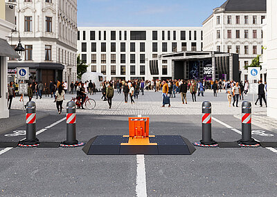 In Zeiten erhöhter Sicherheits-Anforderungen bei Großveranstaltungen nimmt der Schutz vor Fahrzeug-Attacken einen immer größeren Stellenwert ein. Die Volkmann Strassen- und Verkehrstechnik GmbH hat sich mit ihren Produkten auf diesem Gebiet etabliert. Ihre mobilen Zufahrts- und Anti-Terror-Sperren sollen Schutz vor gezielten Fahrzeug-Angriffen bieten, ohne dabei die Ästhetik des öffentlichen Raums zu sehr zu beeinträchtigen.