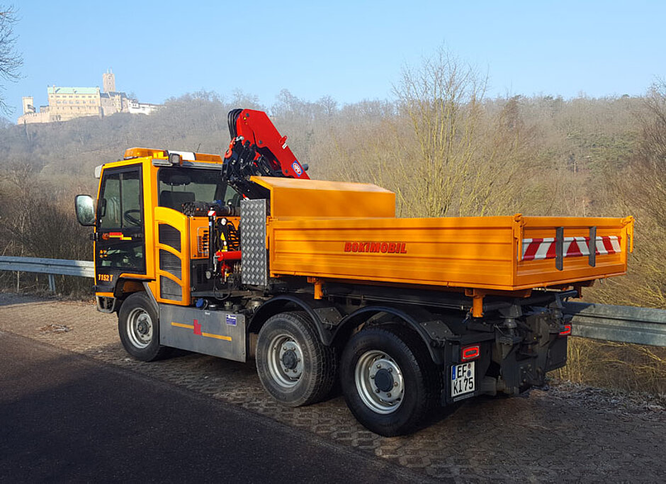 Bereits im Vorjahr konnte Kiefer das BOKIMOBIL 1152T vorstellen. Das Schaltgetriebe-Fahrzeug hat eine zusätzliche dritte Achse, die lift- und lenkbar ist. Für Einsätze im GaLaBau, bei Dienstleistung und Entsorgung, sowie im Straßenunterhalt hat sich das Fahrzeug innerhalt kürzester Zeit als großer Renner herausgestellt, erfüllt es doch bestens die Anforderungen nach großer Wendigkeit bei hoher Traglast. Diese Dreiachs-Technik präsentiert Kiefer auch auf der Demopark in Eisenach.