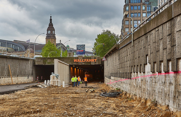 Der rund 550 Meter lange Wallringtunnel, erbaut in den Jahren 1963-1966, verläuft durch die Hamburger Innenstadt und verbindet die Kreuzungen Ferdinandstor und Deichtorplatz. Im Zuge der Sanierungsarbeiten an dem stark befahrenen Tunnel wurden seit Jahresbeginn 2015 rund 4.500 Meter Kabelrohr und 1.100 Meter Rohrleitungen verlegt, der gesamte Tunnel und die Rampen von Grund auf neu ausgebaut sowie rund 50 Schächte und 1.200 Meter Schlitzrinnen erstellt. Insgesamt werden auf der Baustelle, die tagsüber halbseitig und nachts komplett gesperrt ist, etwa 11.000 Tonnen Asphalt verbaut. Die Sanierung wird voraussichtlich im November 2015 abgeschlossen sein. Bei diesem Projekt setzen das beauftragte Bauunternehmen Strabag und der Servicebetrieb BMTI auf die Produkte und Dienstleistungen von Wacker Neuson. Projektleiter Andreas von Rekowski über die Zusammenarbeit: „Unser Strabag-Slogan „Teams Work“ wurde in allen Bereichen widergespiegelt, wir haben sehr gut und partnerschaftlich zusammengearbeitet – über alle Ebenen hinweg.“