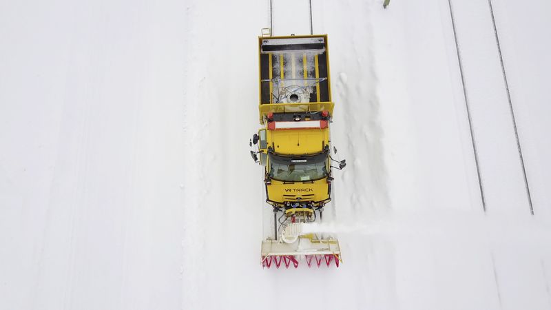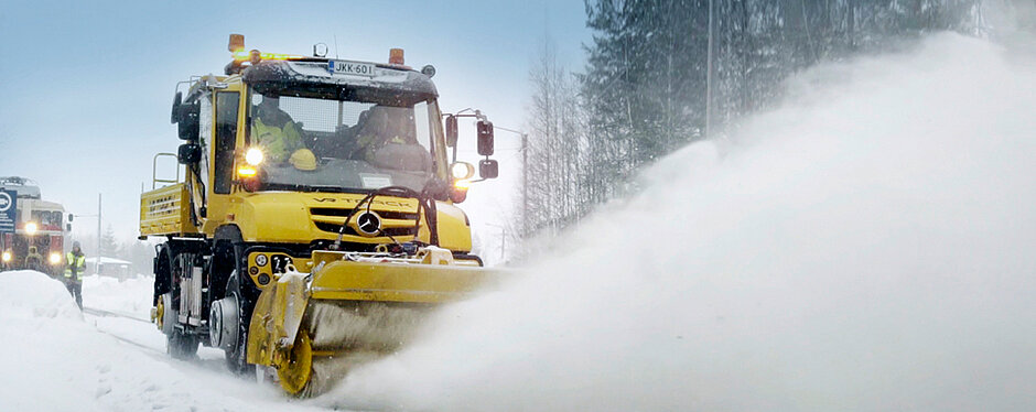 Beim Härtetest 6.000 km Schienennetz von Schnee zu räumen, wurde ein Mercedes-Benz Unimog in Vollausstattung mit Hänsch Warnsystemen von der Firma VR Track (größtes Unternehmen für Gleisbau und Infrastruktur) eingesetzt.