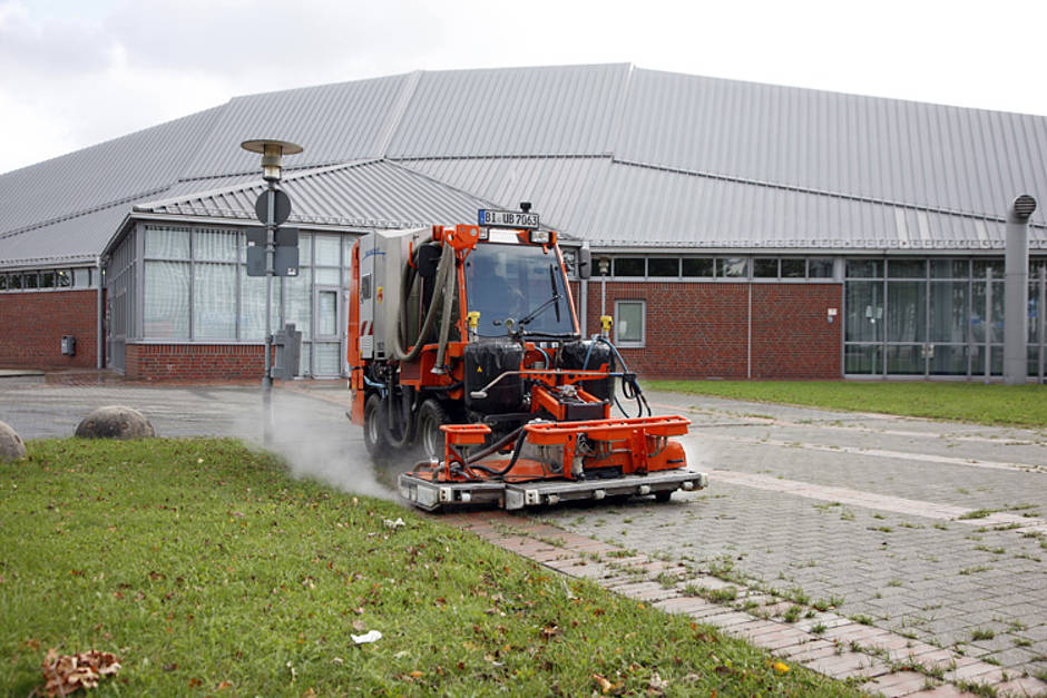 Kommunen sind dazu verpflichtet, die Verkehrssicherheit auf eigenen Flächen, Wegen und Straßen zu gewährleisten. Hierzu zählt auch die Beseitigung von Schadpflanzen auf öffentlichen Flächen, die nahezu das gesamte Jahr über anfällt. Außerdem dient die Beseitigung des Unkrauts dem Erhalt und der Pflege aller Bodenbeläge. Die Wildkrautbeseitigung verbessert auch das Erscheinungsbild eines Gebietes. Das Sicherheitsgefühl bei Anwohnern nimmt zu. Eine umweltfreundliche Methode das Wildkraut zu entfernen, ist das WAVE-Heißwasser-Verfahren: Sensoren spüren das Unkraut auf und punktgenau wird eine Schicht fast kochendes Wasser aufgesprüht. Durch die Hitze gerinnt das Eiweiß der Pflanzen, und nach ein paar Tagen sterben sie ab.