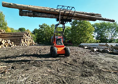 Mit 1.800 Watt Antriebsleistung und einer Steigfähigkeit von bis zu 57,7 Prozent (30 Grad) meistert der Dumper auch schwieriges Gelände. Die elektrische Auskippung (serienmäßig) ermöglicht präzises, dosiertes Entladen – selbst am Hang – und erspart kraftaufwendiges Kippen per Hand. Ein werkzeugloses Schnellwechselsystem gewährleistet einen raschen Wechsel zwischen Mulde und Pritsche, während die Pendelachse für stabilen Bodenkontakt auf unebenen Flächen sorgt. Zudem garantiert der schmale Geräteaufbau (76 cm) Wendigkeit.