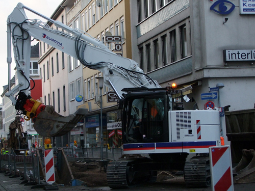 Langfristig wird sich zeigen, was mit der Maschine samt Anbaugeräten alles möglich ist. Die erste Bewährungsprobe hat der neue Cat Kurzheckbagger bereits erfolgreich bestanden: Zusammen mit dem Arge-Partner Strabag ist die Niederlassung von Eurovia Teerbau bei der Sanierung des Zentralplatzes in Koblenz zugange und hat in diesem Zusammenhang die komplette Kanalisation samt der Straßen erneuert.