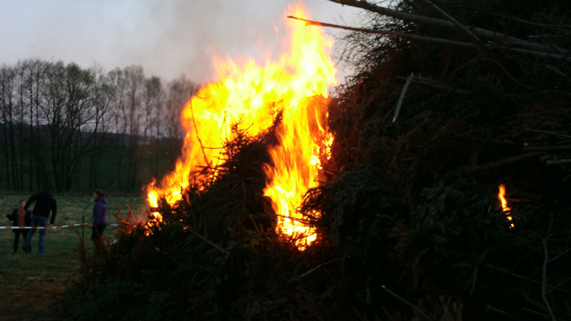 Im Landkreis Göttingen werden ebenfalls Sammelstellen eingerichtet, an denen die Bürger ihre alten Weihnachtsbäume ablegen können. Der Landkreis fährt diese Bereiche dann ab und bringt die Bäume zur Weiterverwertung. In Duderstadt – einer selbständigen Gemeinde des Landkreises – kümmert sich der dortige Bauhof um das Einsammeln der kleineren Christbäume in der Innenstadt sowie des großen Baums am Rathaus. „Die haben wir ja auch aufgestellt“, sagt Bauhofleiter Frank Widera. Deshalb werden sie von den Männern des Bauhofs auch wieder abgeschmückt und abtransportiert. Ein Entsorgungsfachbetrieb holt die verholzten Pflanzen schließlich vom Bauhof ab und bringt sie zur Kompostieranlage. In den restlichen Teilen der Stadt kümmern sich dagegen die Pfadfinder um die ausrangierten Bäume, berichtet der Bauhofleiter. Die werden eingesammelt und mehrere Wochen auf einer Freifläche gelagert. Vor Ostern wird der Haufen dann noch einmal umgeschichtet, damit er als Osterfeuer auf der freien Fläche am Rückhaltebecken verbrannt werden kann. Zu diesem Anlass ziehen die Pfadfinder mit einem großen Fackelzug dorthin und lassen die alten Bäume dann in Flammen aufgehen. Neben der Tradition des Osterfeuers gibt es in einigen Teilen Deutschland auch die des Weihnachtsbaumverbrennens – so wie in Klein-Gerau, einem Ortsteil der hessischen Gemeinde Büttelborn. In der ersten Woche nach Neujahr sammeln die Mitglieder der Jugendfeuerwehr die ausgedienten Christbäume im Laufe des Vormittags ein. Bei Musik, Essen und Trinken wird dann der Haufen mit den ausgedienten Bäumen ebenfalls angezündet. Die Einnahmen der Feier kommen wiederum der Jugendfeuerwehr zugute.
