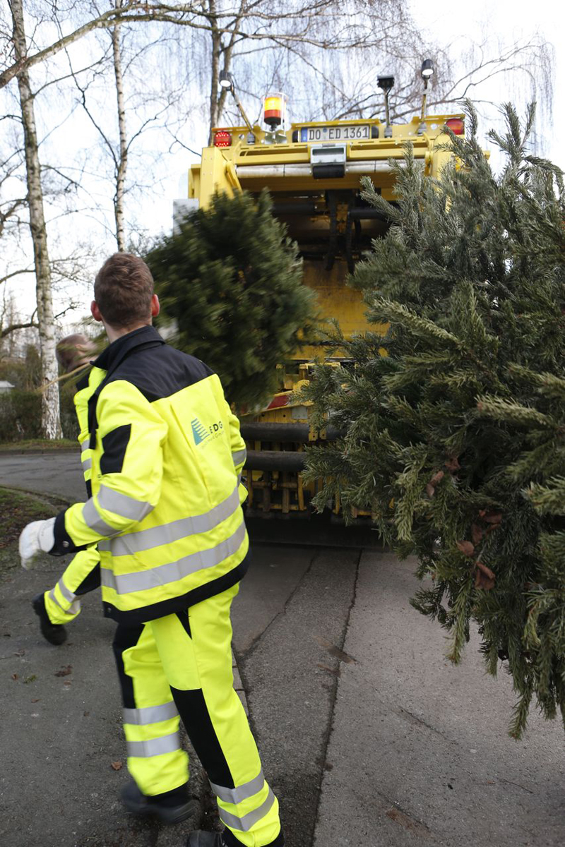 350 Tonnen an alten Weihnachtsbäumen sind in diesem Jahr in Dortmund zusammengekommen. „Geht man von 5 Kilogramm pro Baum aus, sind das umgerechnet 70.000 Weihnachtsbäume“, macht Petra Hartmann, Pressesprecherin bei der EDG Entsorgung Dortmund GmbH, deutlich. In der kreisfreien Stadt sammeln zum einen EDG-Mitarbeiter der Straßenreinigung und Müllabfuhr die ausrangierten Gewächse ein. Um noch weitere Freiwillige zu gewinnen, die mitanpacken, startet das Unternehmen zudem jedes Jahr einen Aufruf unter seinen Angestellten. Gemeinsam ziehen sie dann an einem Tag im Januar mehrere Stunden mit Müll- und Sperrmüllfahrzeugen los und sammeln die ausgedienten Weihnachtsbäume, die die Bürger dafür an den Straßenrand gelegt haben, ein. Der EDG wird aber nur da in Dortmund tätig, wo keine freiwillige Initiative sich um das Einsammeln kümmert. Die karitativen Gruppen, wie beispielsweise die Pfadfinder, ziehen mit ihren eigenen Fahrzeugen los. Die EDG stellt ihnen aber in ihren jeweiligen Einsatzgebieten Sammelcontainer mit einem Fassungsvermögen von 40 Kubikmetern zur Verfügung. Diese werden vom Unternehmen auch wieder abgeholt, wenn sie mit den alten Bäumen voll sind. Die karitativen Gruppen erhalten zudem von der EDG als Aufwandsentschädigung eine Spende. „In unserem Fall kommen die Bäume dann in eine mechanisch-biologische Aufbereitungsanlage“, berichtet Hartmann. Hier werden die ehemaligen Weihnachtsbäume zu organischem Material und Energie weiterverarbeitet. In den insgesamt 84 Sammelgebieten in Dortmund waren in diesem Jahr in 67 davon Mitglieder von 39 verschiedenen gemeinnützigen Organisationen unterwegs. Um die restlichen 17 Gebiete kümmerten sich 79 Mitarbeiter der EDG. Sollten Bürger den Termin verpassen oder ihren Weihnachtsbaum noch etwas länger behalten wollen, haben sie die Möglichkeit, die Gewächse kostenlos am EDG-Betriebshof oder an einem der insgesamt sechs Dortmunder Recyclinghöfe abzugeben.