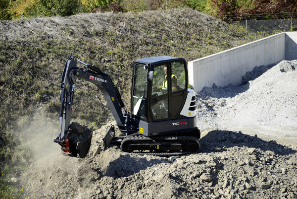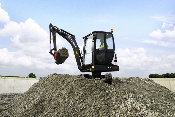 Terex Compact Germany (Crailsheim) präsentiert auf der bauma sechs neue Minibagger von 1,4 bis 3,7 Tonnen. Neues Design, neu konzipierter Arbeitsplatz und moderne Baggersteuerung zeichnen die Modelle aus. Ergebnis ist XL Grableistung, XL Arbeitsplatz, XL Bedienerfreundlichkeit und XL Service. Zu den präsentierten Modellen gehören TC14-2, TC16-2, TC19-2, TC22-2, TC35-2 und TC37-2. In den nächsten 24 Monaten werden noch weitere Modelle zur Marktreife gebracht. Es ist die größte Neuprodukt-Entwicklung am Standort Crailsheim. XL Grableistung Terex hat getestet – die neuen bieten im Vergleich zu gängigen Wettbewerbsmodellen durchschnittlich bis zu 20 % mehr Arbeitsleistung, Beispielsweise beim schnellen Ausheben von Gräben. Die Minis sind mit einer LUDV-Hydraulik (Last-unabhängige-Durchfluss-Verteilung) ausgestattet, das bieten nur wenige Modelle in dieser Leistungsklasse. Die LUDV sorgt dafür, dass die Kraft bedarfsgerecht am Arbeitsgerät ankommt. Auch bei extremen Böden dringt der Löffel kraftvoll ein und wird komplett gefüllt. Durch die konventionelle Bauweise steht die Maschine stabil und schaukelt sich nicht auf. Für den präzisen Betrieb von Anbauwerkzeugen wie Hammer oder Fräse ist der zweite Steuerkreis elektrisch-proportional – ab TC22-2 Standard, für die kleineren Modelle optional. Der Fahrer steuert über Joystick (Terex Fingertip-Steuerung) sehr präzise, eine Besonderheit der neuen Minibagger, da diese Ausstattung sonst erst bei Baggern in höheren Klassen zum Einsatz kommt. Ein extra großer Dieseltank unterstützt außerdem lange Arbeitseinsätze.